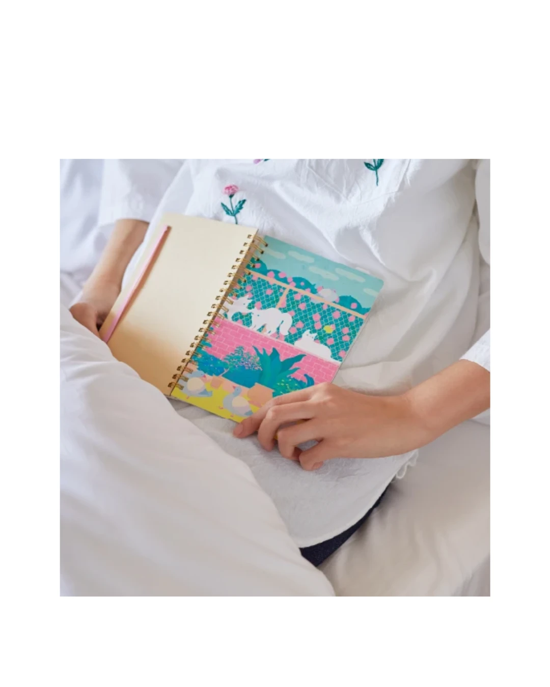 Zamykany jest na gumkę dopasowaną kolorystycznie do projektu okładki. Przy pisaniu jednej strony dziennie wystarcza na około 4 miesiące.