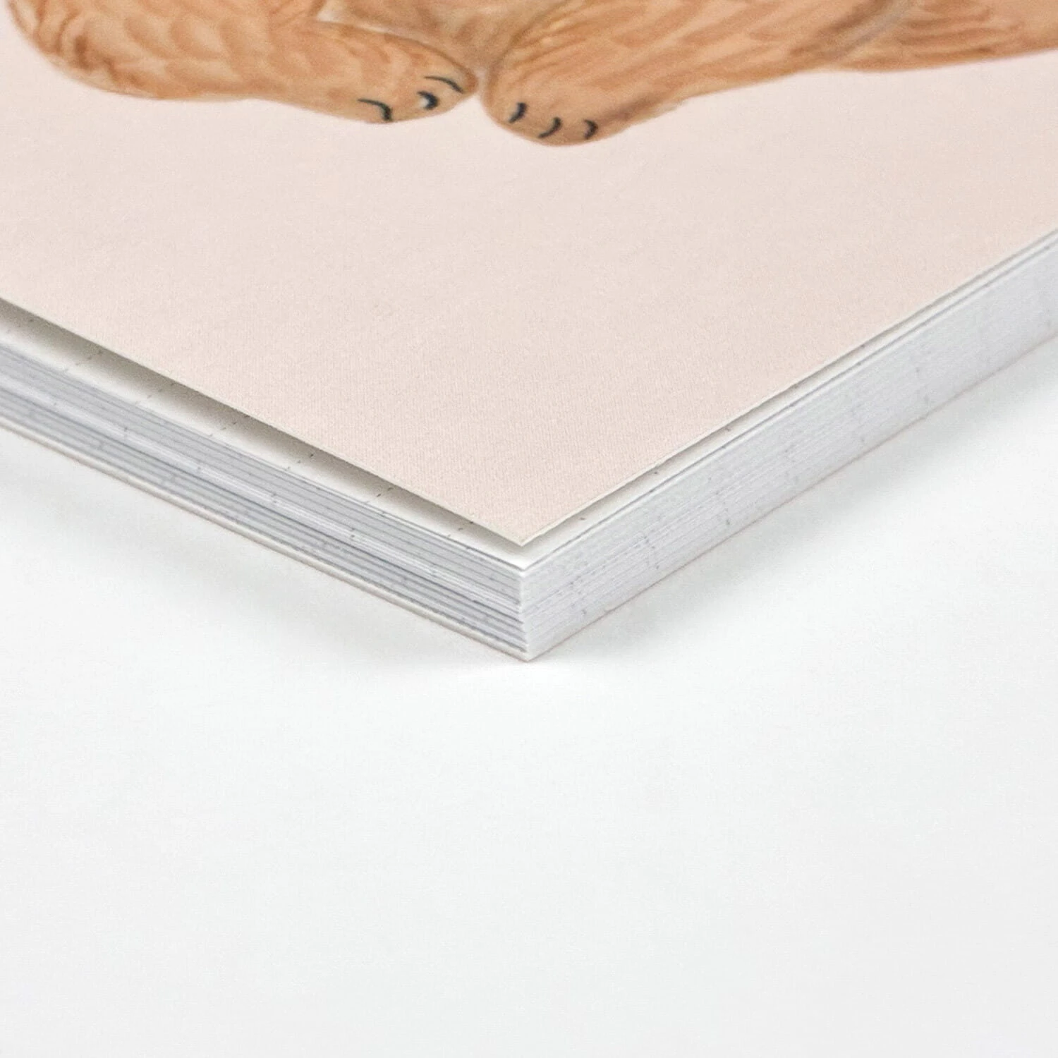 Zeszyt z uroczymi ilustracjami na okładce i jedwabistym papierem w kratę w środku.